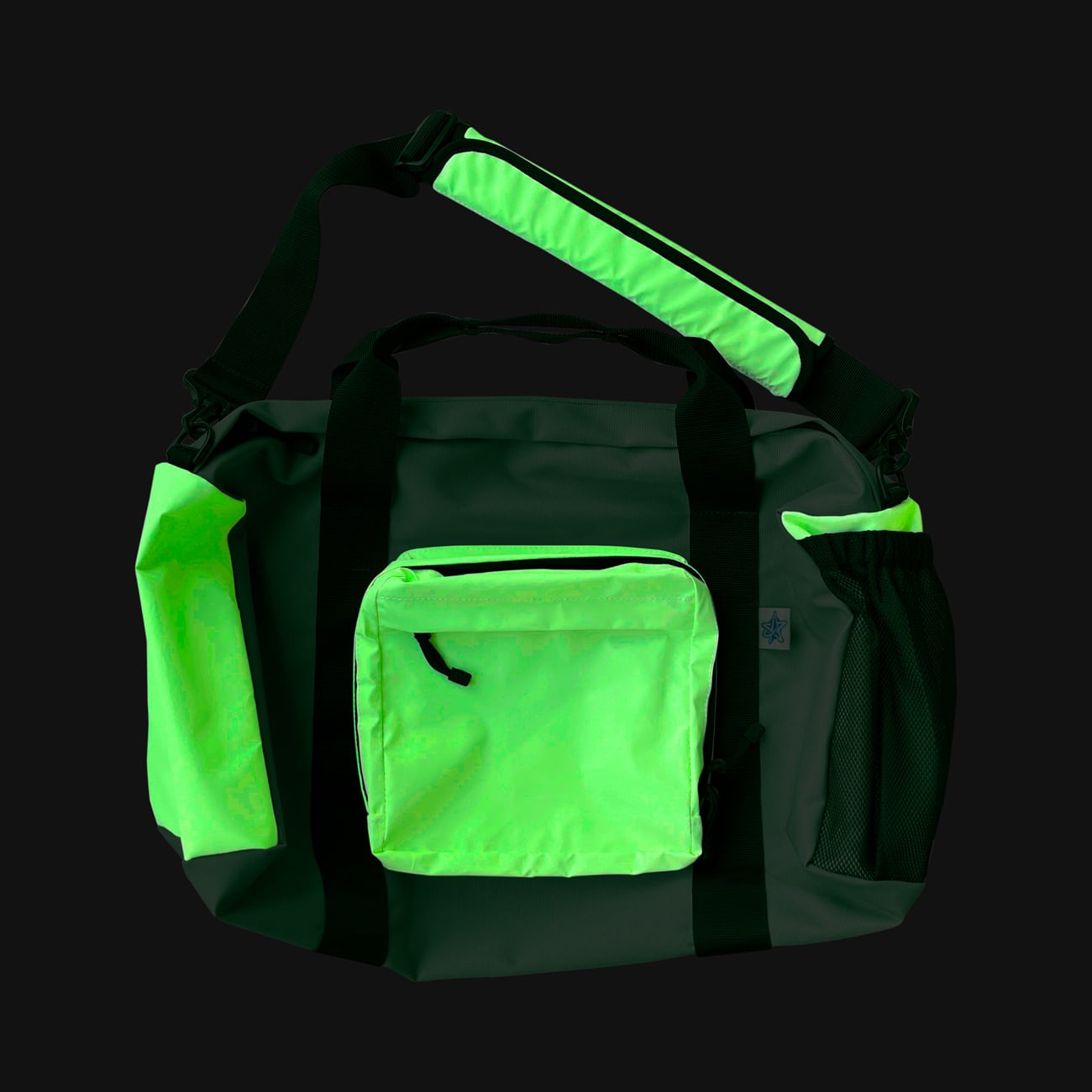 RESmildivと小松マテーレが開発した蓄光と反射(リフレクター)の特性を併せ持つ特殊生地を部分的に配したダッフルバッグになります。